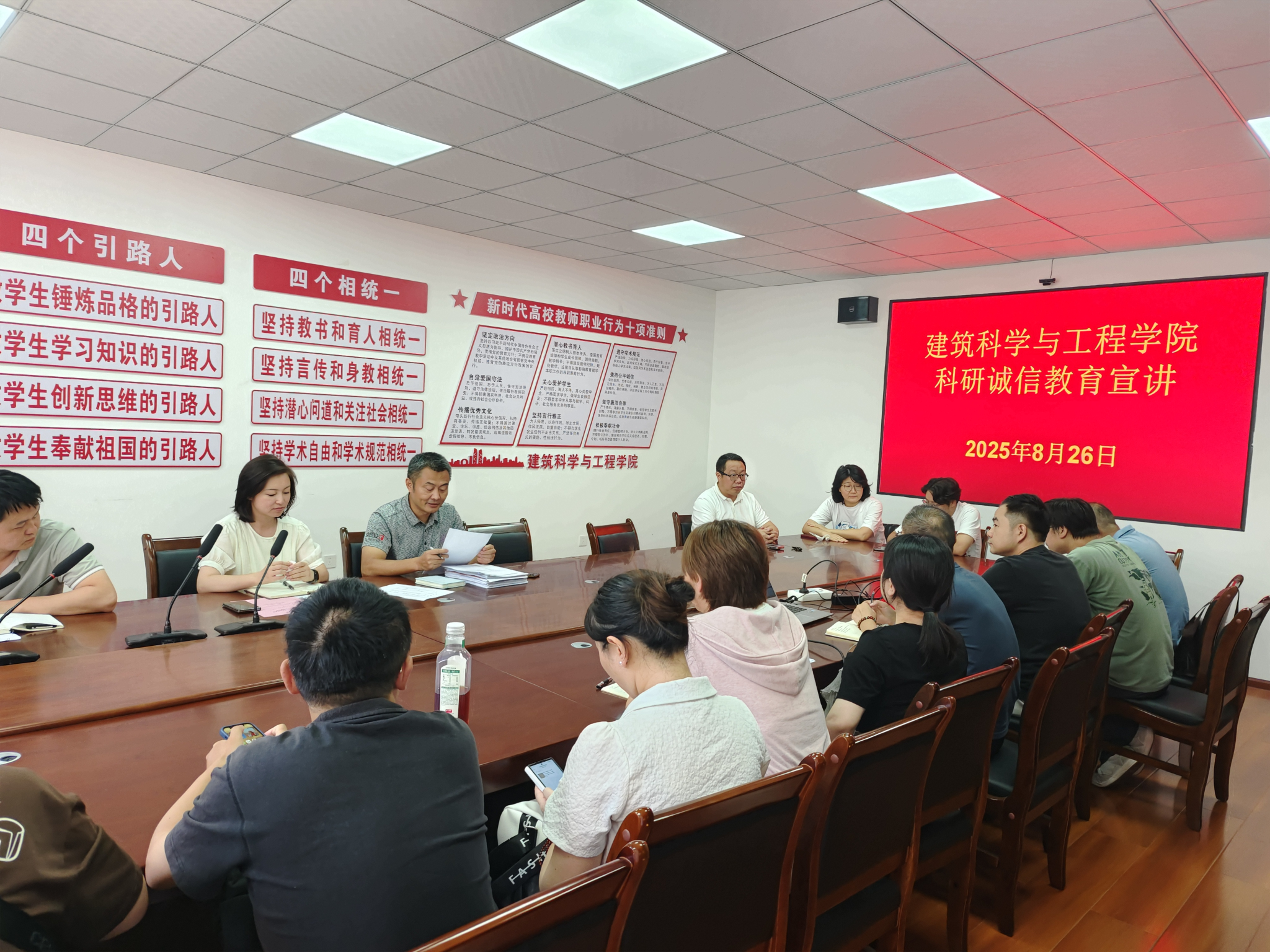 为了深入贯彻《科研失信行为调查处理规则》《高校预防与处理学术不端行为办法》等文件精神,切实加强科研诚信建设,营造风清气正的科研生态,2025年8月26日,建筑科学与工程学院开展科研诚信教育宣讲会。学院旨在通过此次宣讲,增强师生对科研诚信重要性的认识,规范科研行为,推动学院科研诚信及经费管理体系建设,营造良好的科研学术环境。