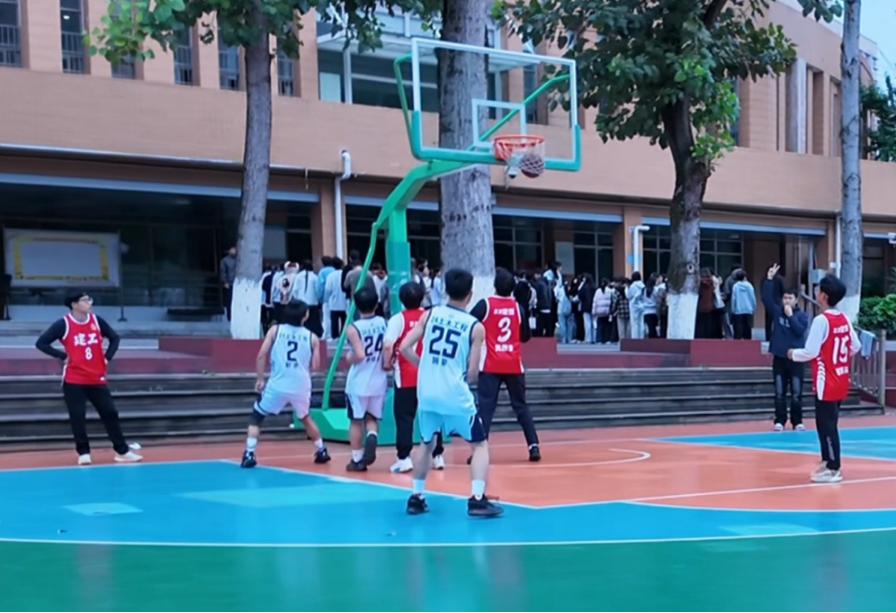 本次篮球赛汇聚了来自2022级至2025级的多个班级代表队。赛场上,队员们斗志昂扬,精彩场面层出不穷——果断的抢断、默契的传导、精准的投篮,不断将比赛推向高潮,充分展现了建工学子顽强拼搏、团结协作的体育风尚。场边,各班的啦啦队与观众热情助威,呐喊声与欢呼声此起彼伏,汇成秋日校园里一道洋溢着青春活力的风景线。