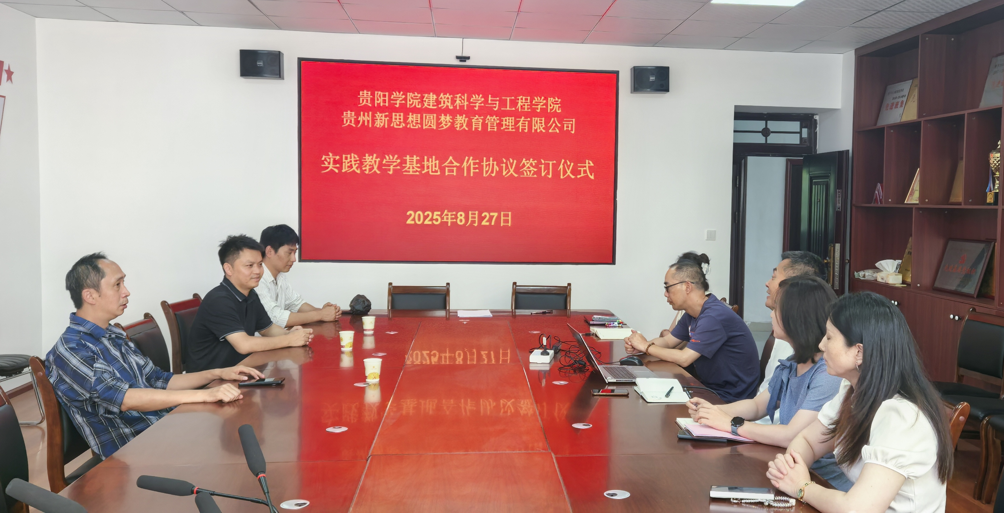 2025年8月27日中午,建筑科学与工程学院与贵州新思想圆梦教育管理有限公司举行实践教学基地合作协议签约仪式。学院相关负责人、专业教师代表及企业负责人共同出席仪式。